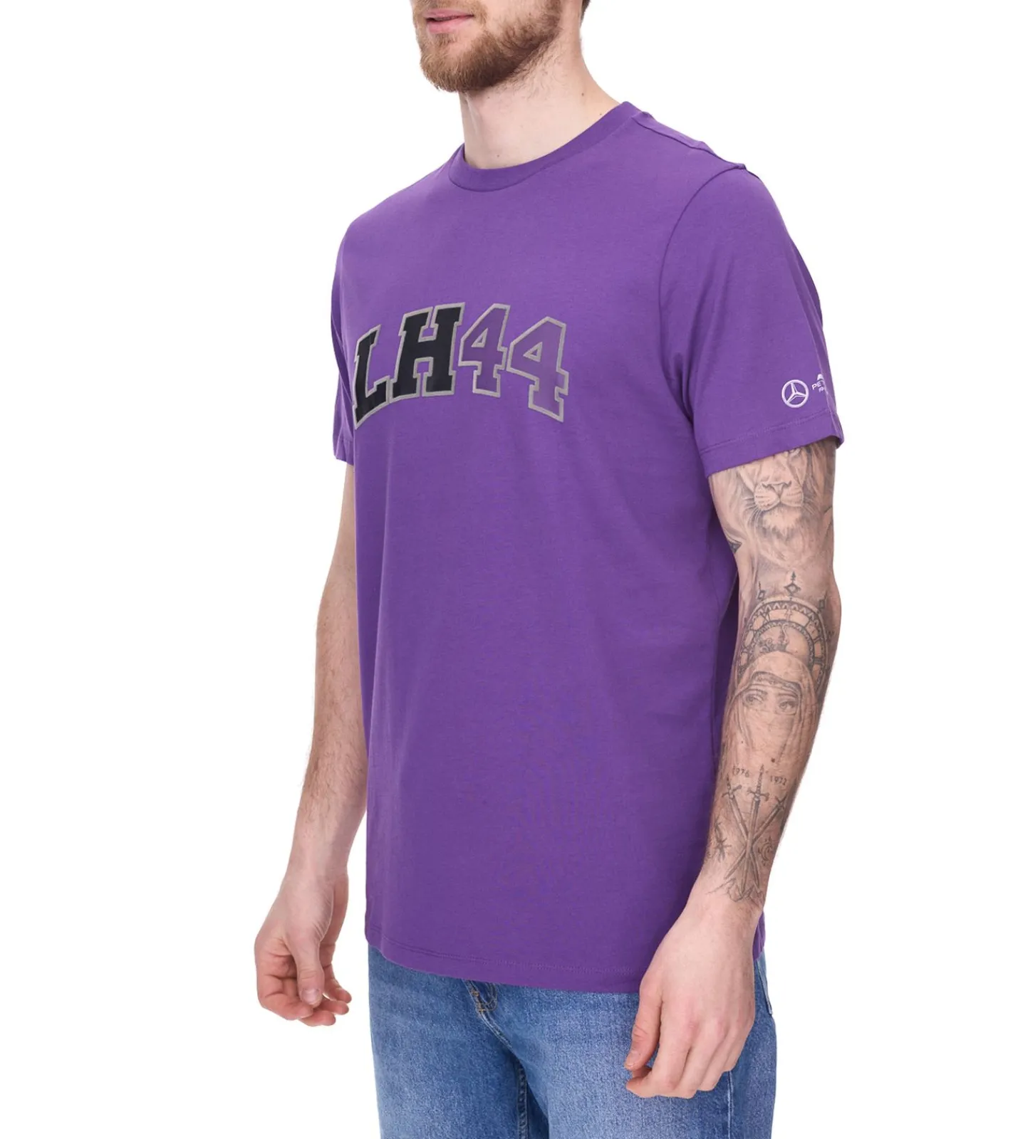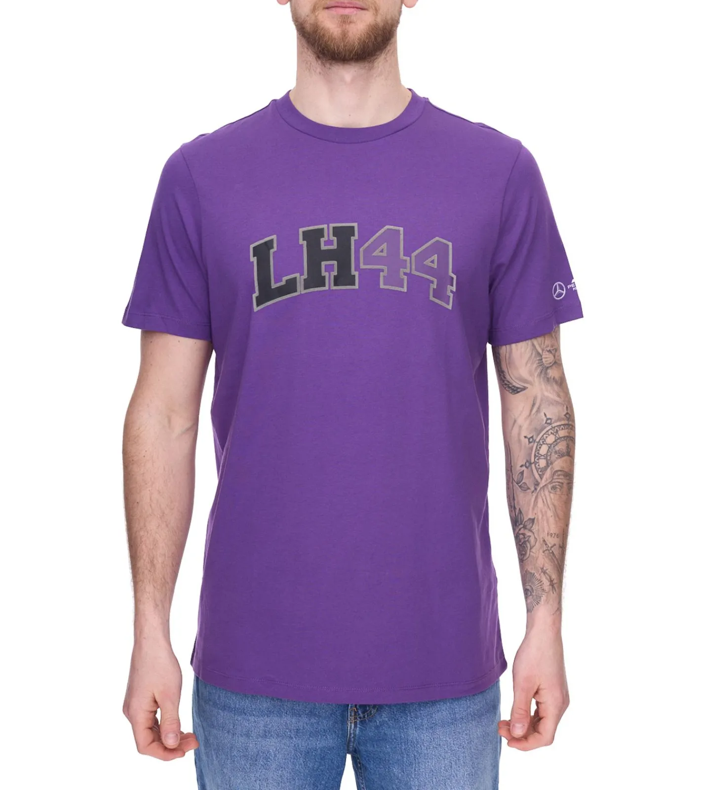 Mercedes-Benz AMG Petronas F1 MAPF1 FW Logo Herren Baumwoll-Shirt mit „LH 44“ Schriftzug Rundhals-Shirt 701222304 002 Violett/Schwarz/Grau
