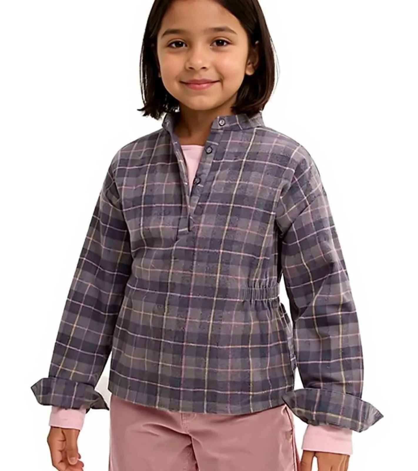 Kinder Flanell-Bluse für Mädchen Baumwoll-Shirt mit Raffung an der Taille mit Knopfverschluss 930775 Grau/Rosa
