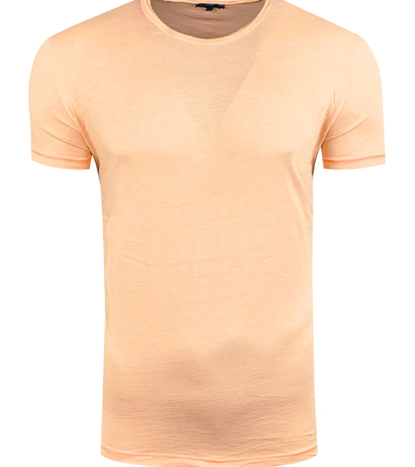 Herren T-Shirt Basic Baumwoll-Shirt verwaschenes Rundhals-Shirt Kurzarm R-15200 Neon-Orange