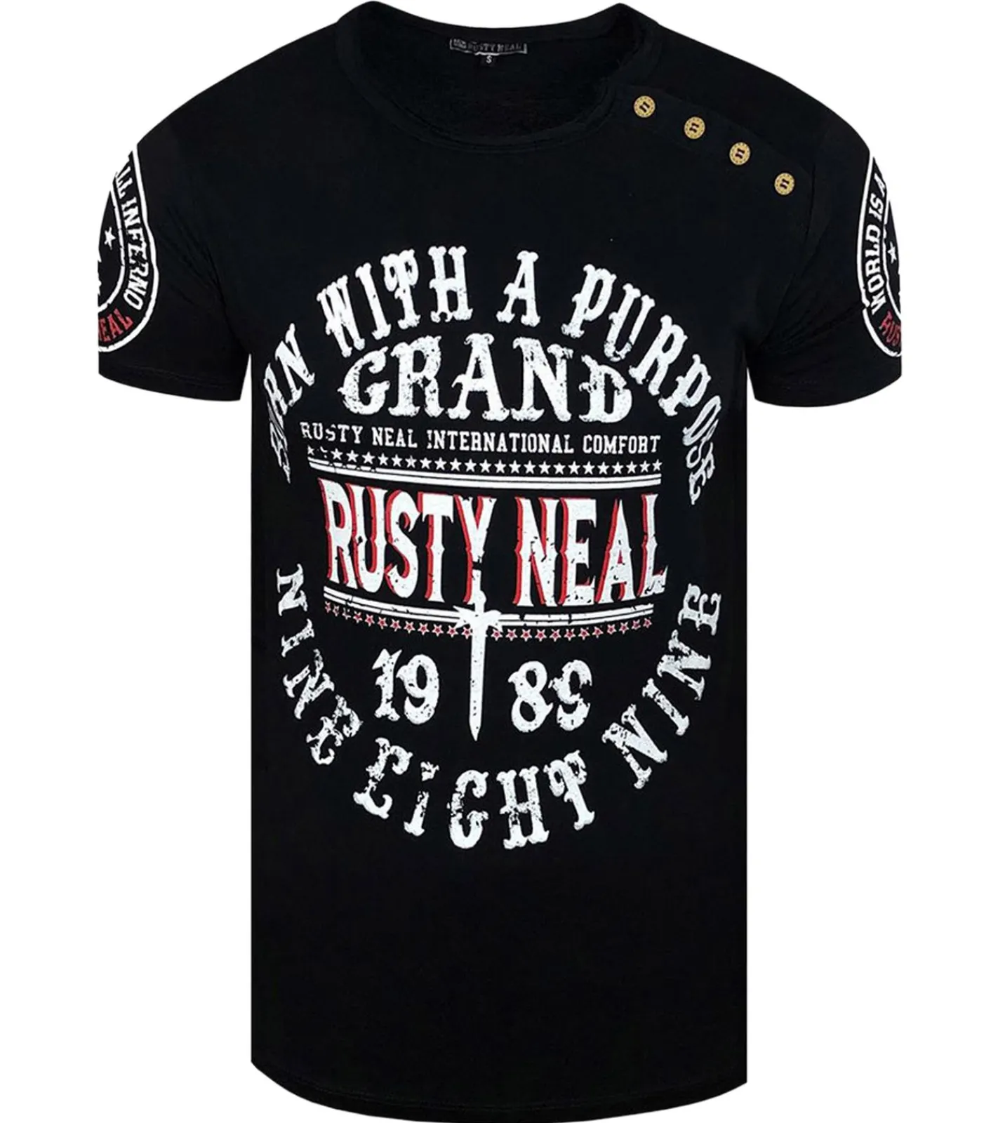Herren T-Shirt mit „Born with a Purpose“ Print Baumwoll-Shirt Rundhals-Shirt R-15216 Schwarz