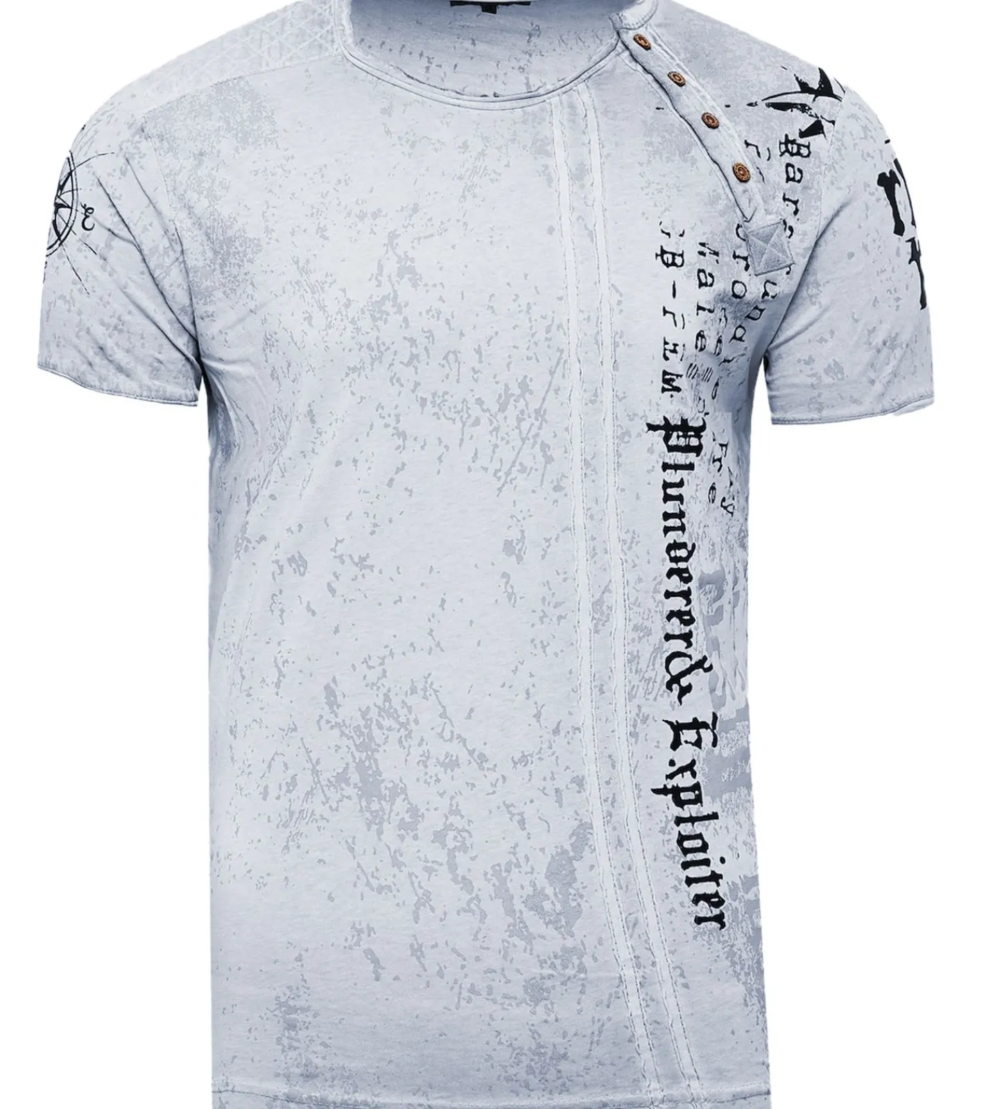 Herren T-Shirt mit Plunderer & Exploiter Print Baumwoll-Shirt Rundhals-Shirt R-15191 Grau