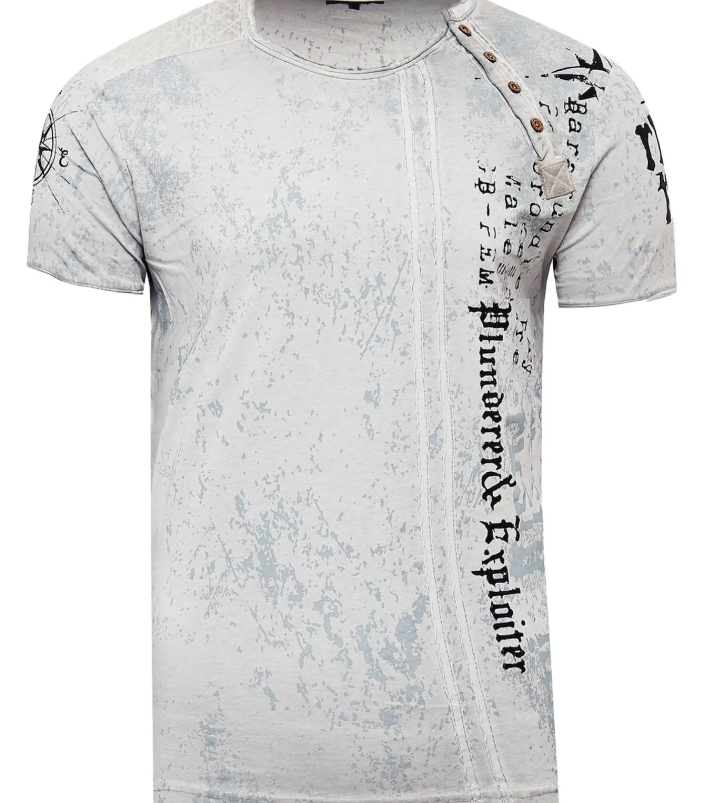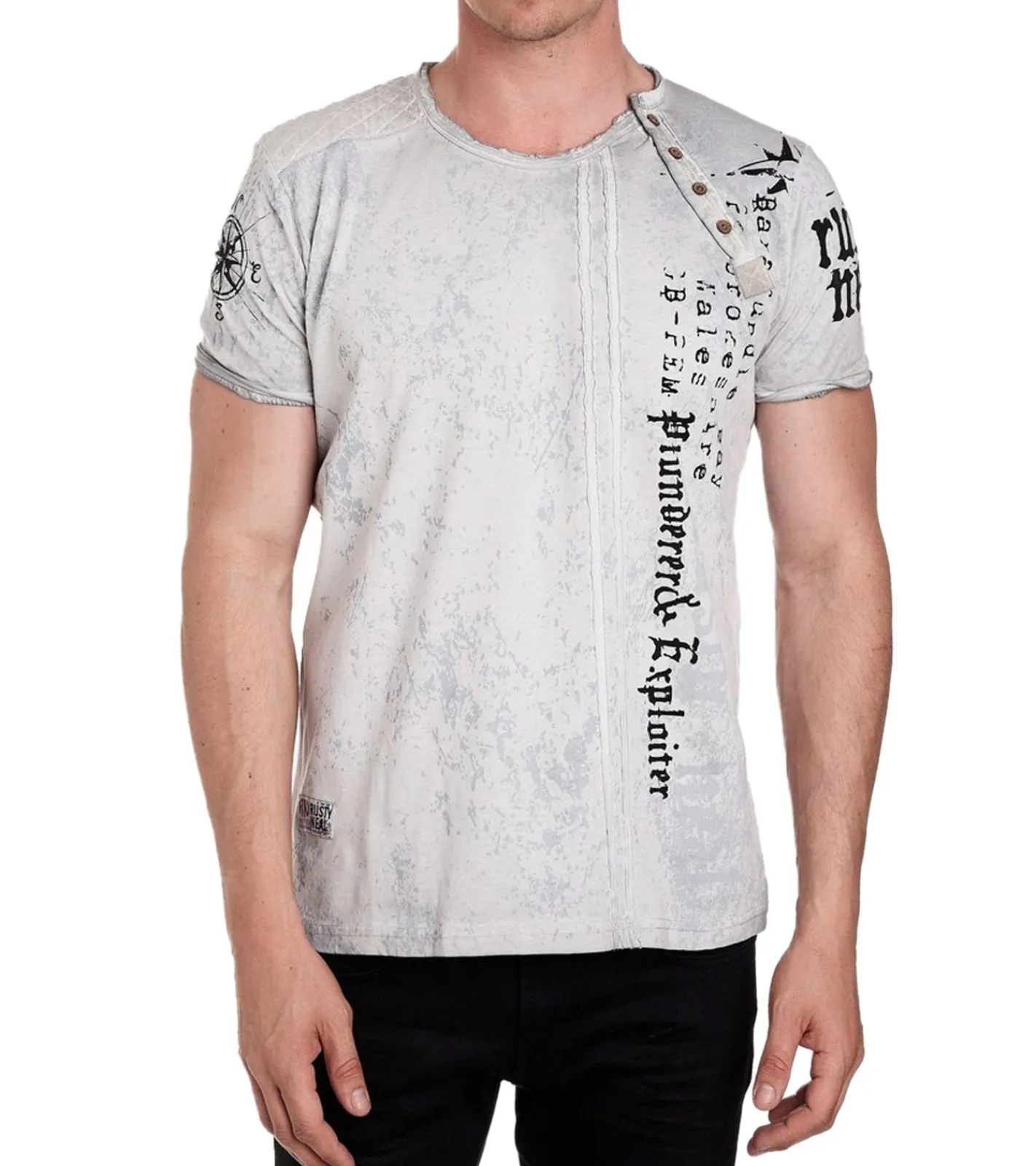 Herren T-Shirt mit Plunderer & Exploiter Print Baumwoll-Shirt Rundhals-Shirt R-15191 Grau