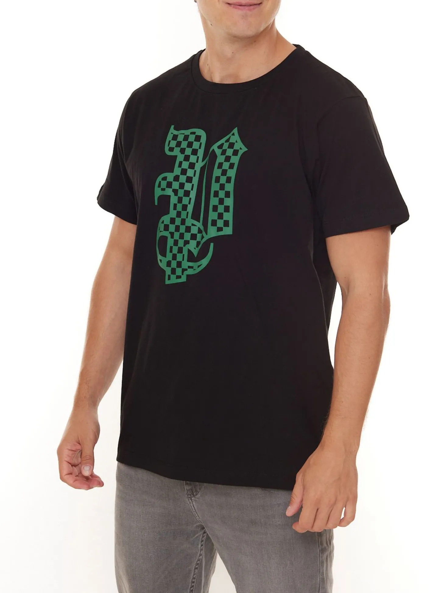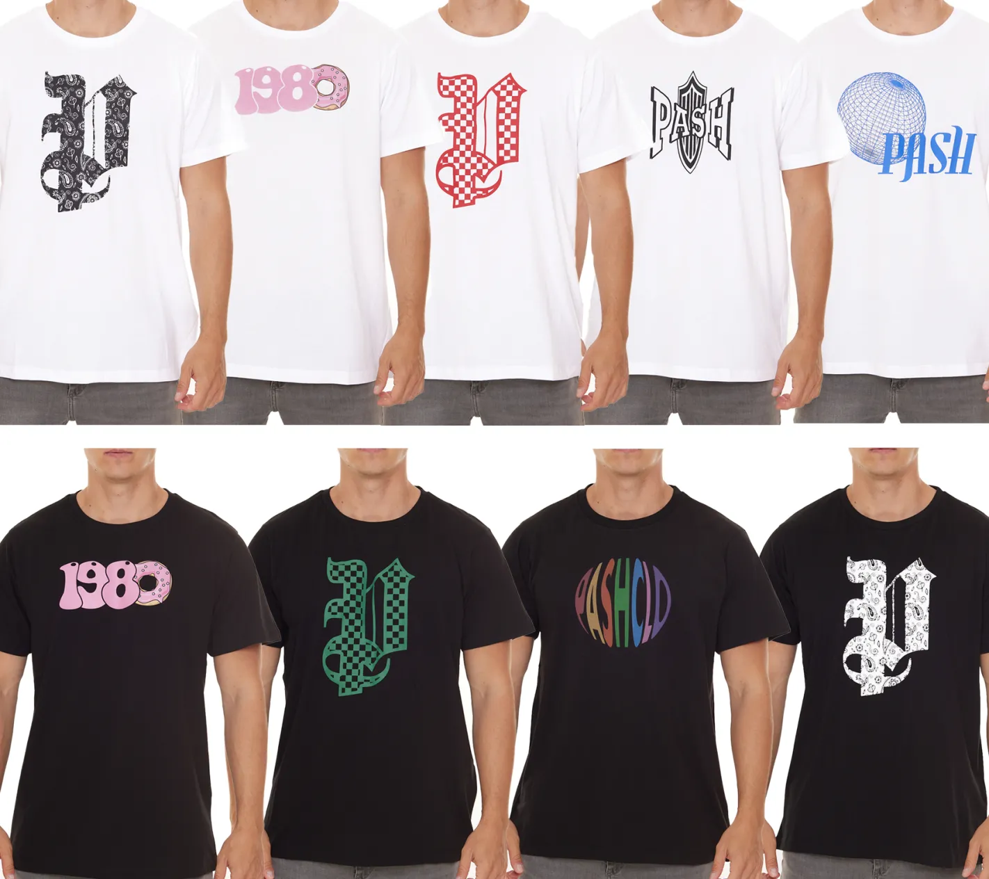 PASH Herren Kurzarm-Shirt mit verschiedenen großem Frontprints Baumwoll-T-Shirt PATR00 Schwarz/Weiß