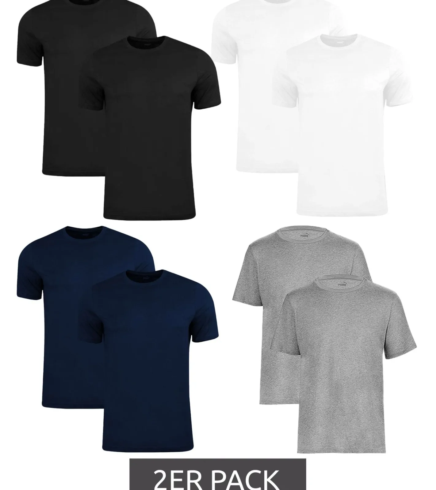2er Pack PUMA Base Kinder Sport-Shirt für Jungen & Mädchen nachhaltiges Baumwoll T-Shirt mit Logo 678577 Grau, Dunkelblau oder 678260 Weiß, Schwarz