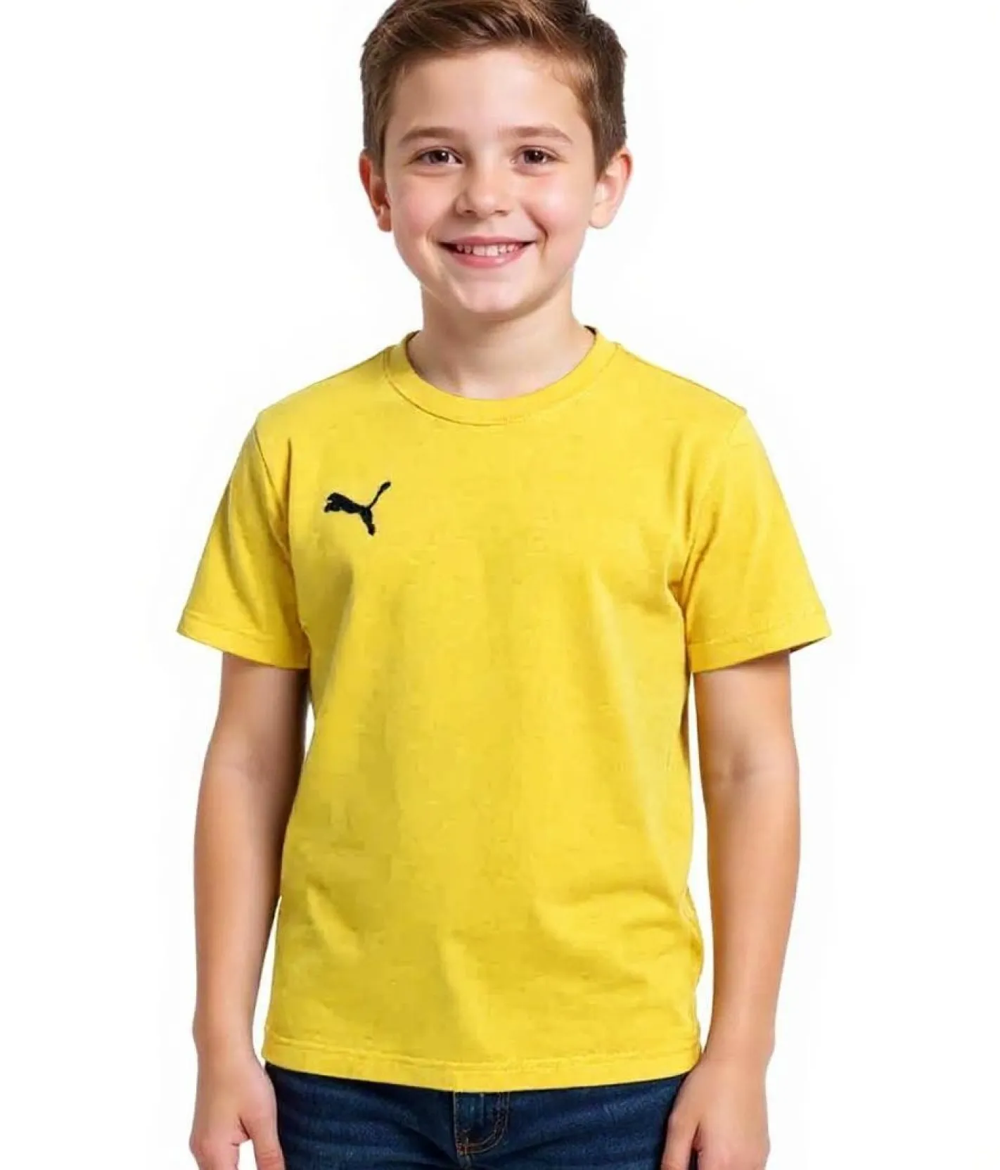 3er Pack PUMA TeamGoal 23 Casual Kinder Sport-Shirt für Jungen & Mädchen Baumwoll T-Shirt mit Logo-Stickerei 656709 07 Gelb
