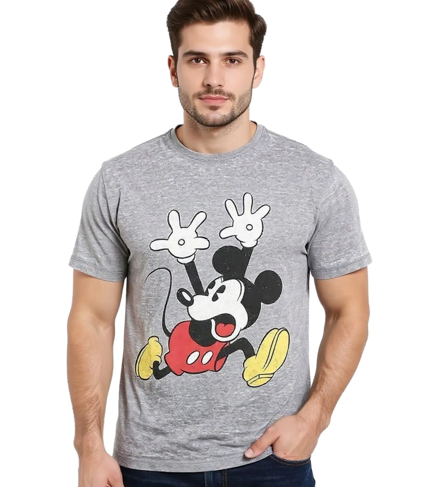 RE:COVERED X Disney Herren T-Shirt mit Panik Mickey Print Baumwoll-Shirt Rundhals-Shirt MMDIS2295 Grau