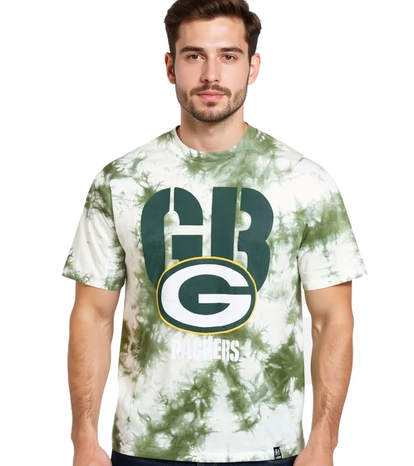 RE:COVERED X NFL Green Bay Packers Herren T-Shirt mit Logo-Print Baumwoll-Shirt Rundhals-Shirt RCNFL1394 Grün/Weiß