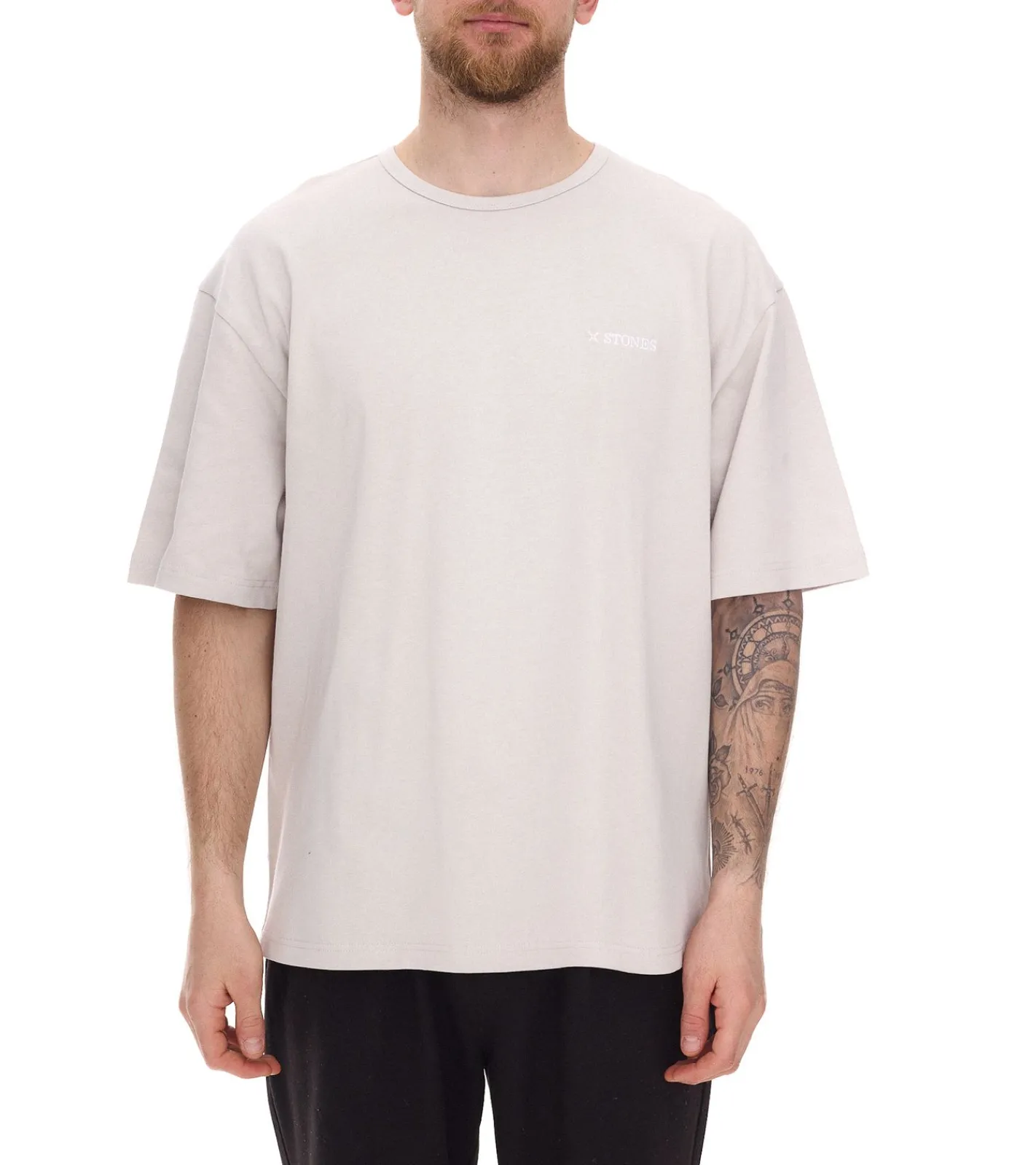 STONES Herren T-Shirt schlichtes Baumwoll-Shirt mit Rundhals und Stick-Logo gestricktes Oversized Kurzarm-Shirt Beige