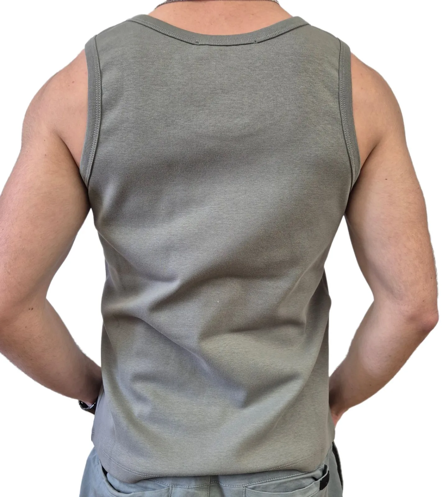 STONES Herren Tank Top Baumwoll-Shirt Rundhals-Top Achsel-Shirt Unterhemd Oliv-Grün