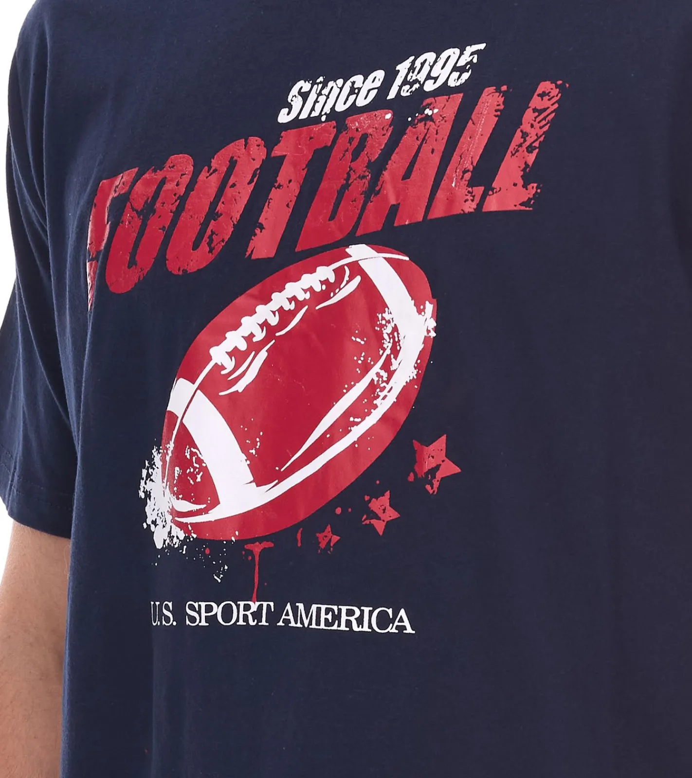 2er Pack U.S. SPORT AMERICA Herren T-Shirt Basic Baumwoll-Shirt Rundhals-Shirt Kurzarm Blau/Weiß