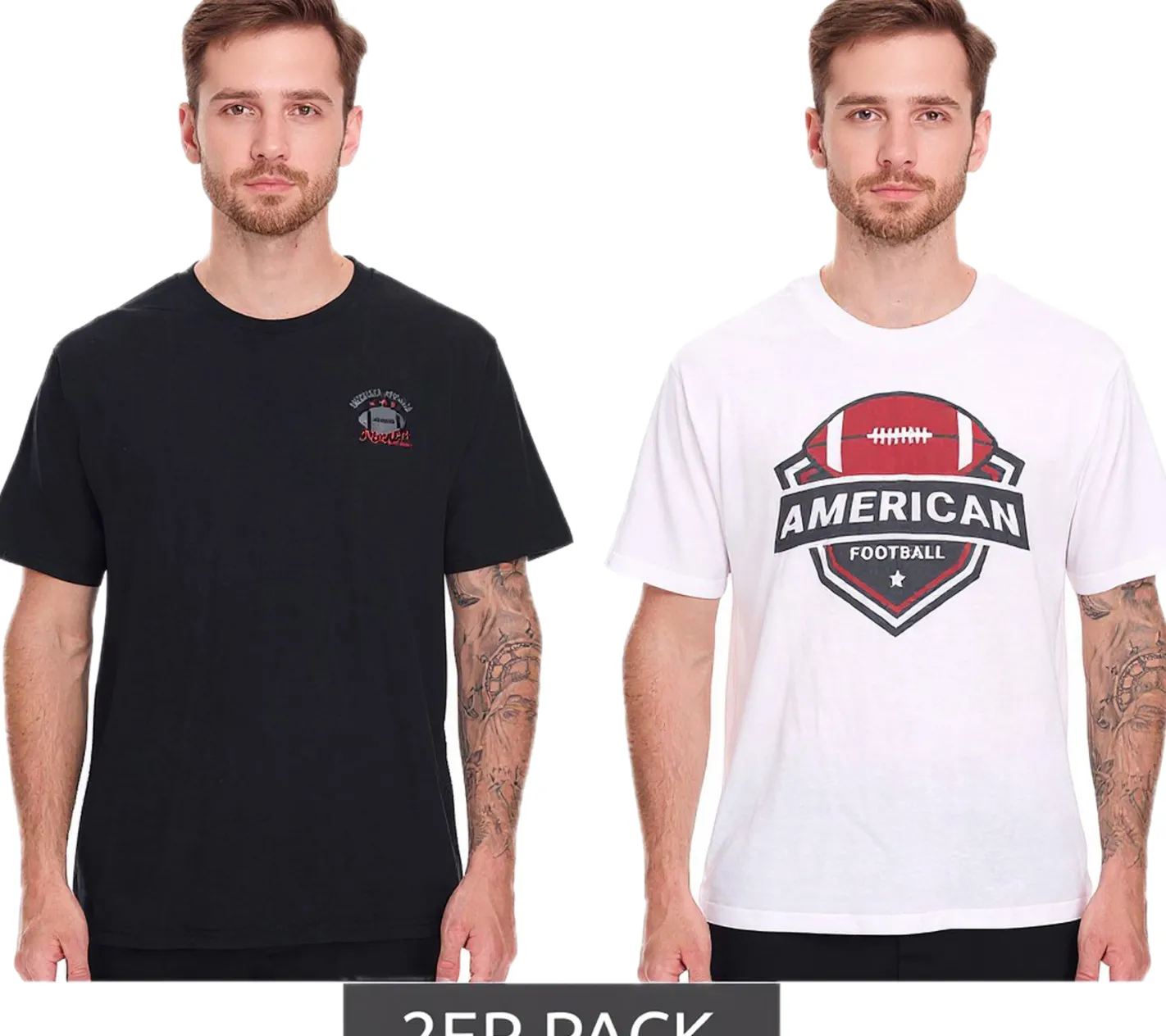 2er Pack U.S. SPORT AMERICA Herren T-Shirt Basic Baumwoll-Shirt Rundhals-Shirt Kurzarm Schwarz/Weiß