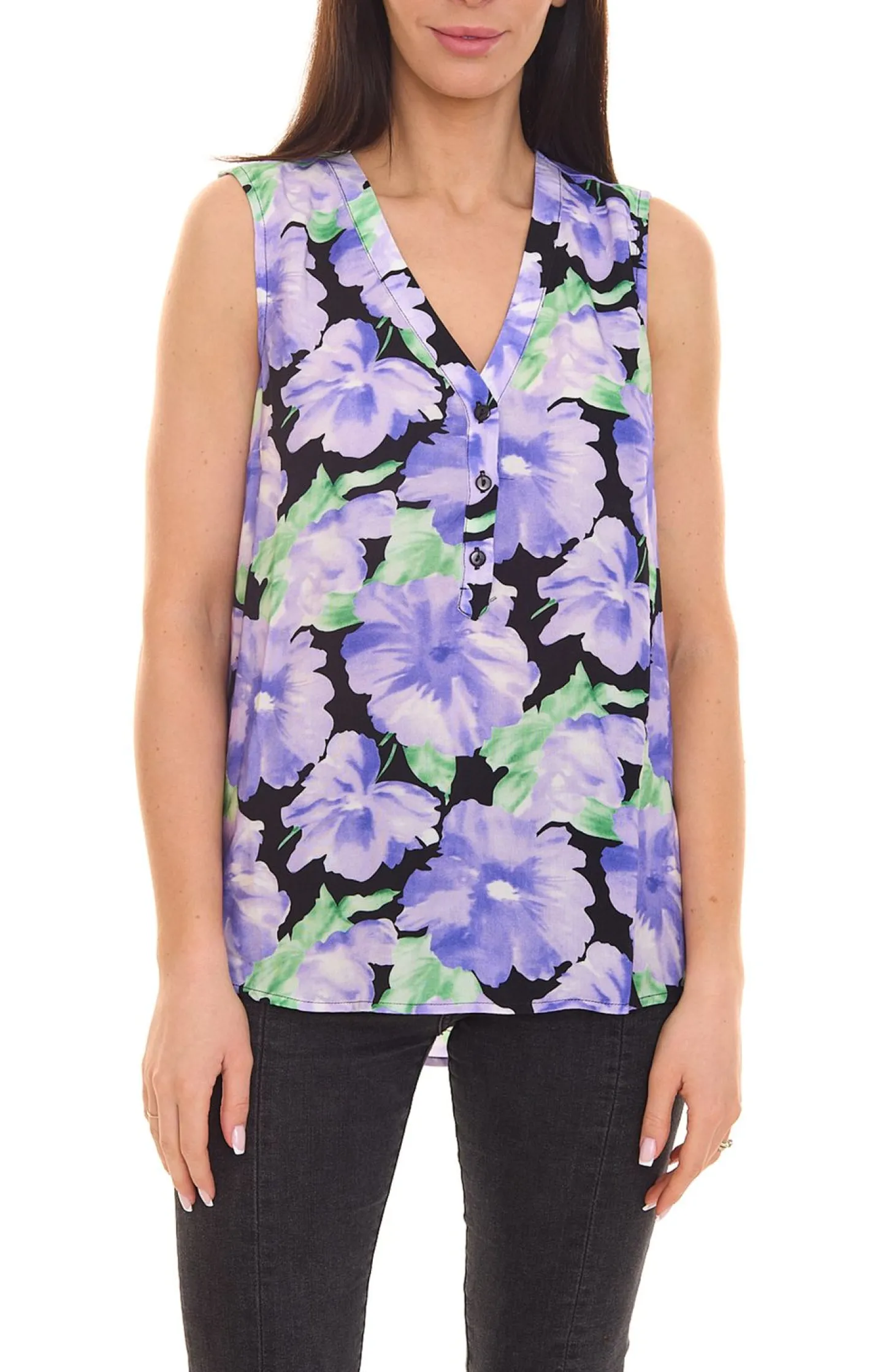 - mit großflächigem Blütendruck im Batik-Look