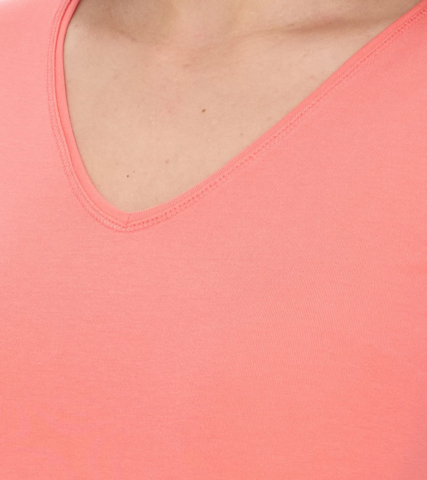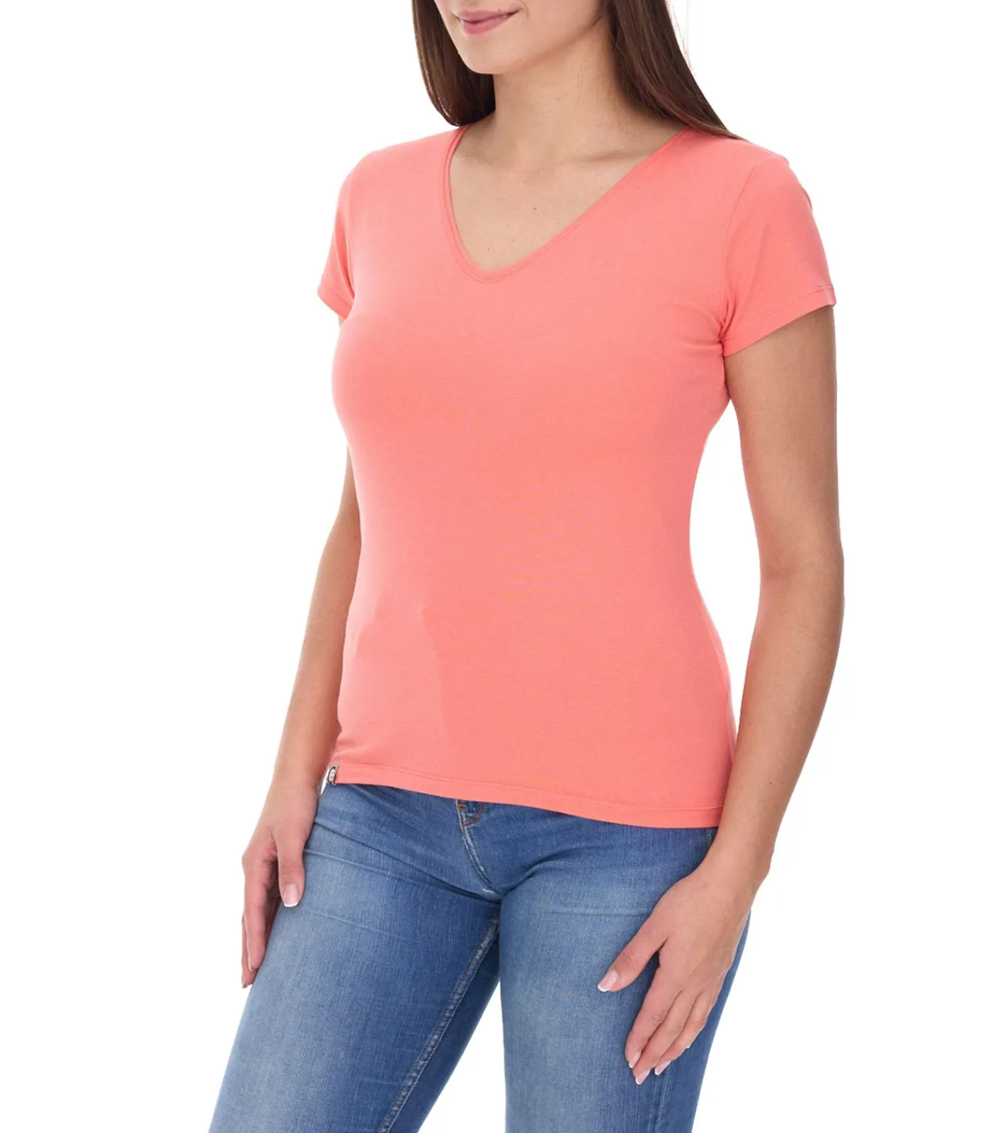 COURSE Damen T-Shirt mit V-Ausschnitt Sommer-Shirt Baumwoll-Oberteil Freizeit-Shirt 900779 Coral