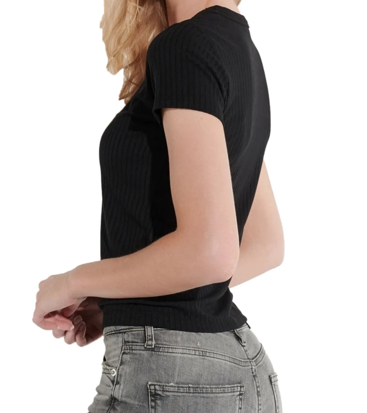 COURSE Damen T-Shirt Ripp-Shirt Sommer-Shirt Kurzarm-Shirt Freizeit-Shirt 900689 Schwarz