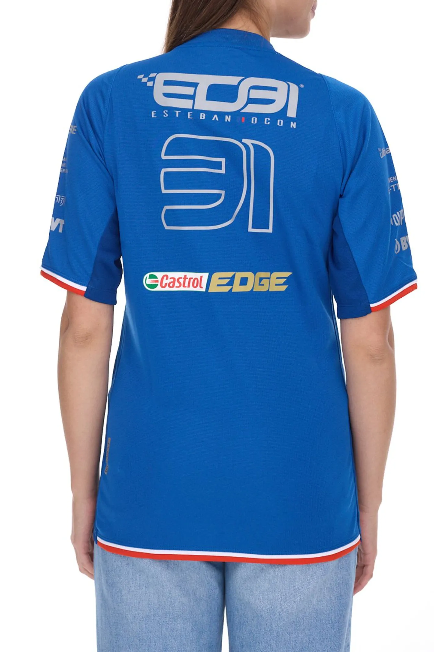 Kappa X ALPINE Formel 1 F1 Ocon Damen Kurzarm-Shirt Sport-Trikot mit V-Ausschnitt Alltags-Shirt 351883W AF1 A01 Blau