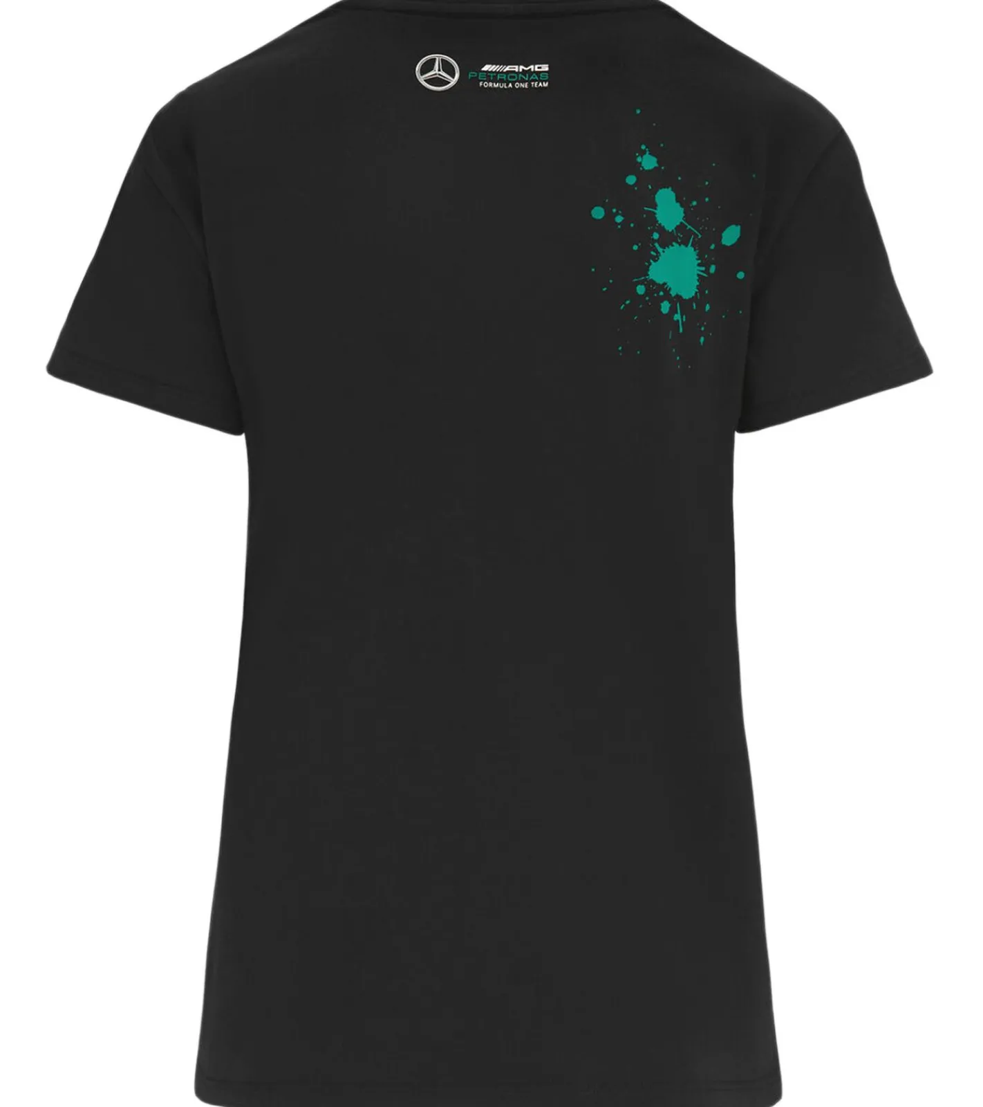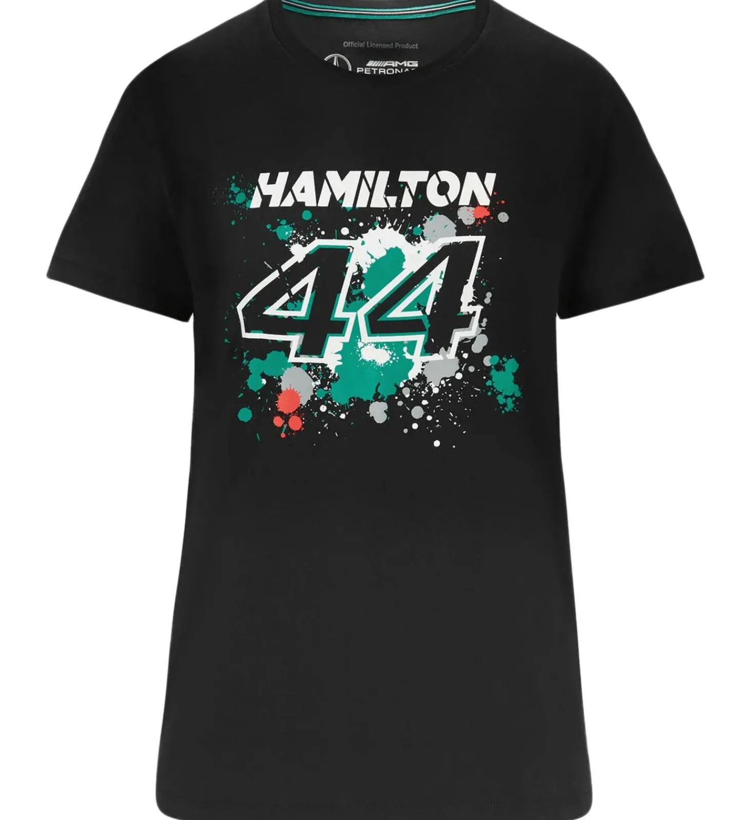 Mercedes-Benz AMG Petronas F1 Lewis Damen T-Shirt mit Lewis Hamilton Schriftzug 44 Baumwoll-Shirt 701218889 001 Schwarz