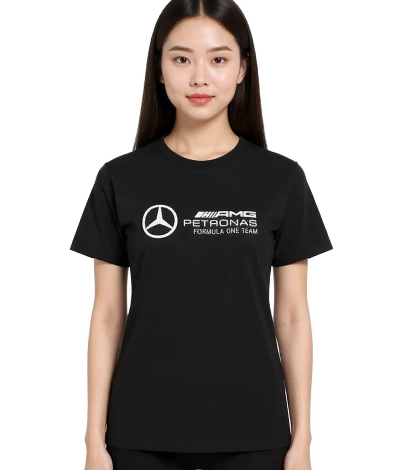 Mercedes-Benz AMG Petronas F1 MAPF Damen T-Shirt Baumwoll-Shirt mit großem Logo Kurzarm-Shirt 701227045 001 Schwarz