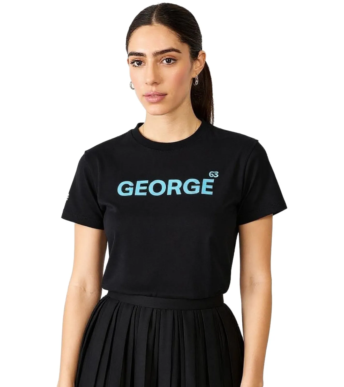 - Dieses George Russell T-Shirt für Damen hat den gleichen auffälligen blau-schwarzen Stil wie die breitere GR63 Fanwear-Kollektion, mit einem einzigartigen kontrastierenden 窶曩eorge 63窶ückseite