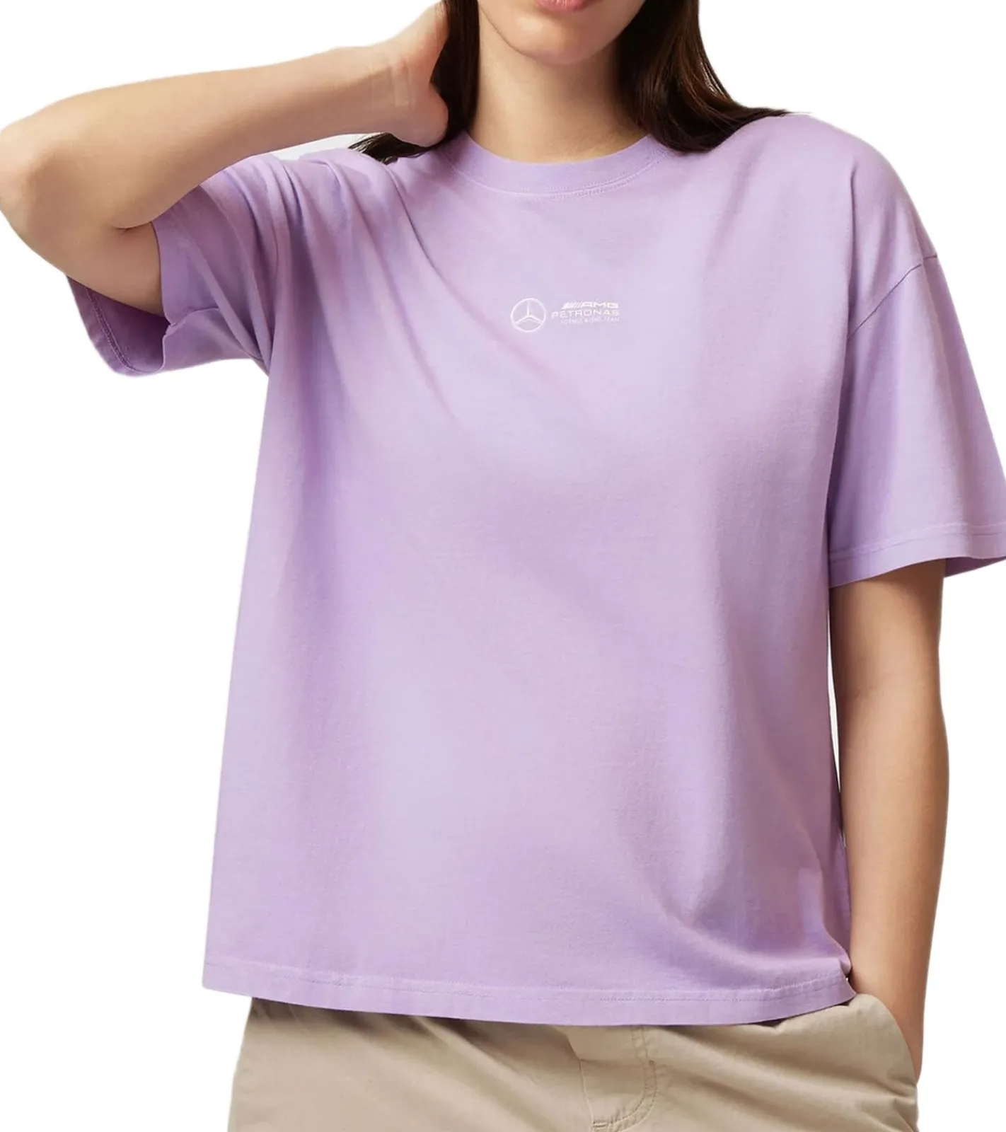 Mercedes-Benz AMG Petronas F1 Retro Damen T-Shirt mit großem AMG Petronas Rückenschriftzug Baumwoll-Shirt 701225452 002 Violett