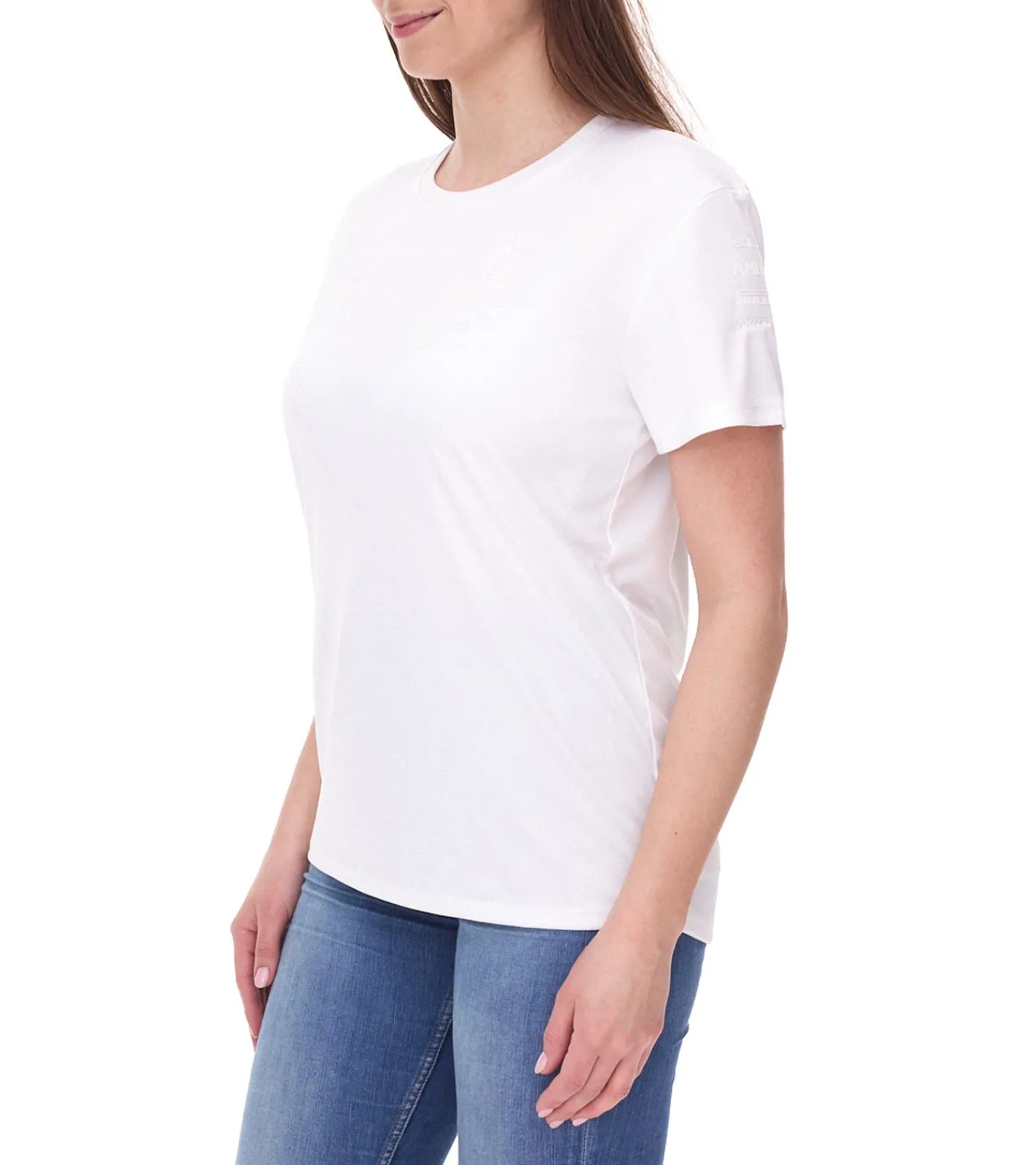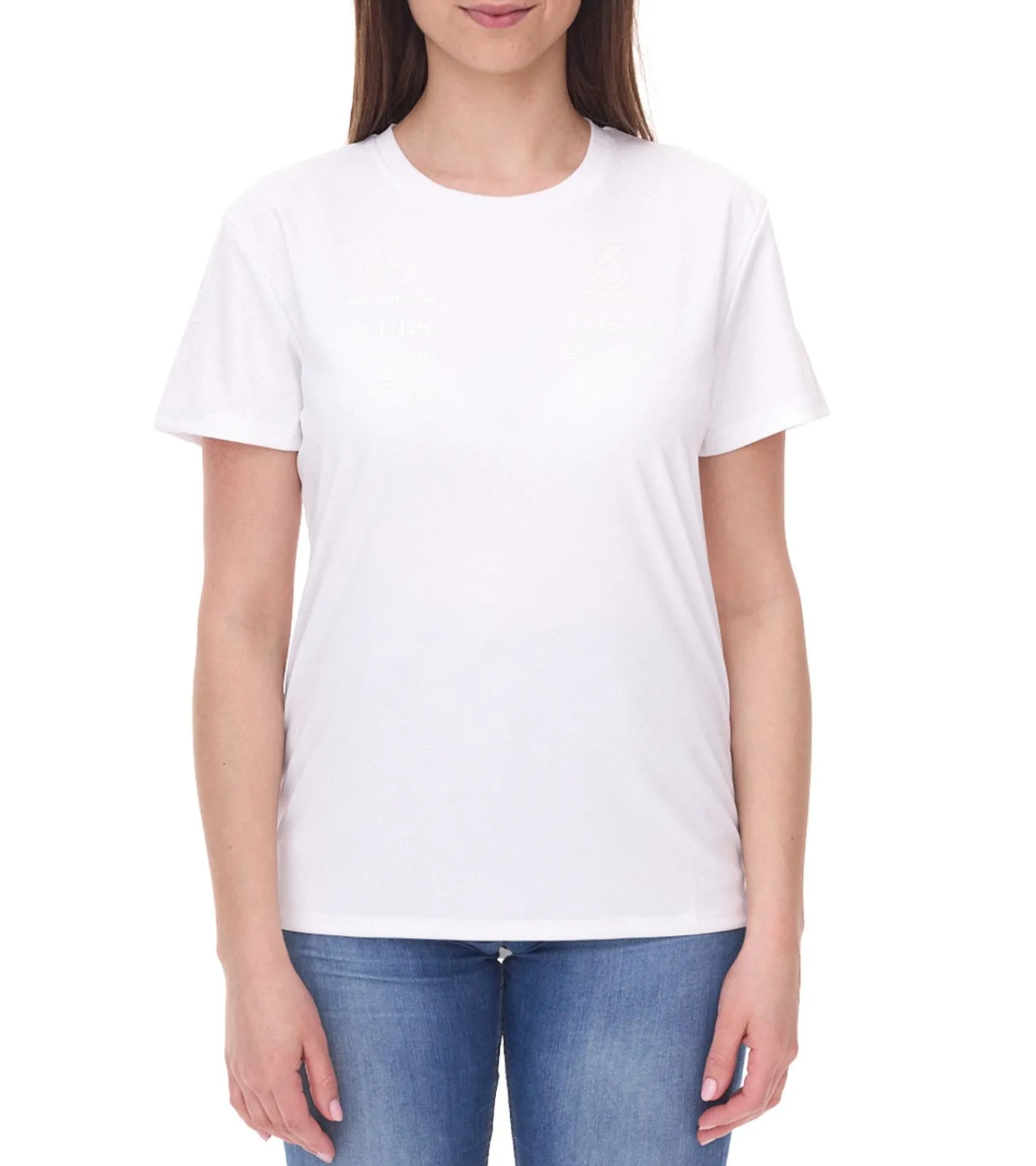 Mercedes-Benz AMG Petronas F1 Stealth Logo Damen T-Shirt mit Team- und Sponsoren-Logos Motorsport-Shirt 701225461 002 Weiß