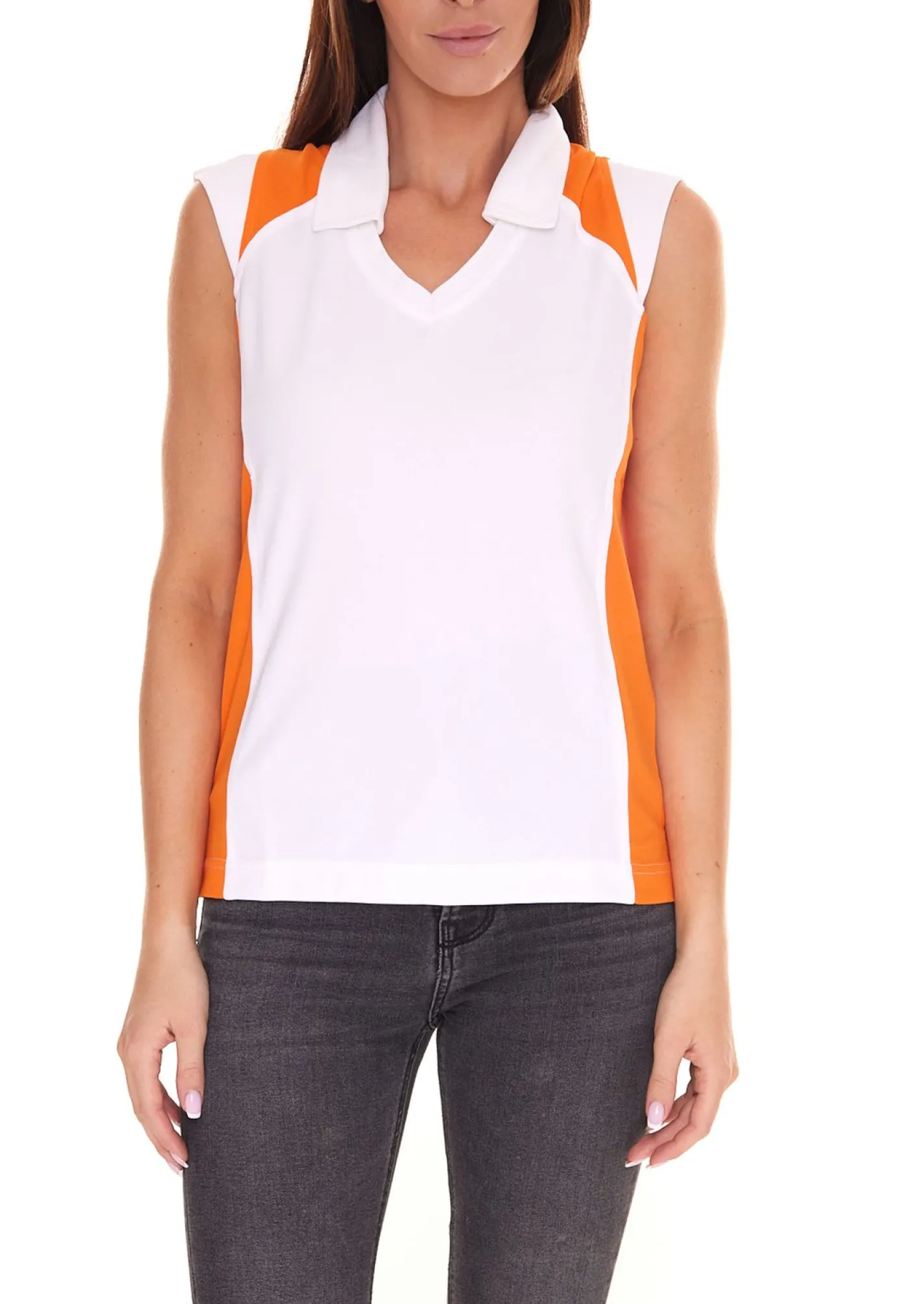 PGA TOUR Damen Achsel-Shirt mit Hemdkragen Golf-Shirt mit CoolFit 3508933 Weiß-Orange