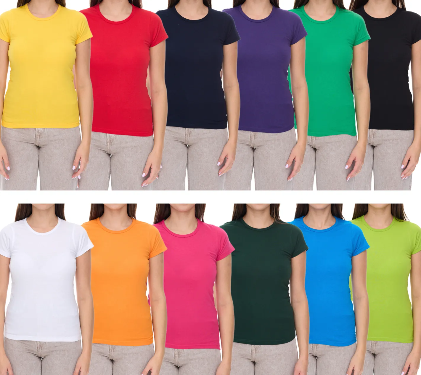 WORXWEAR Damen T-Shirt modisches Rundhals-Shirt mit 180gsm Kurzarm-Shirt in Blau, Schwarz, Weiß, Gelb, Orange, Grün, Violett, Pink, Rot