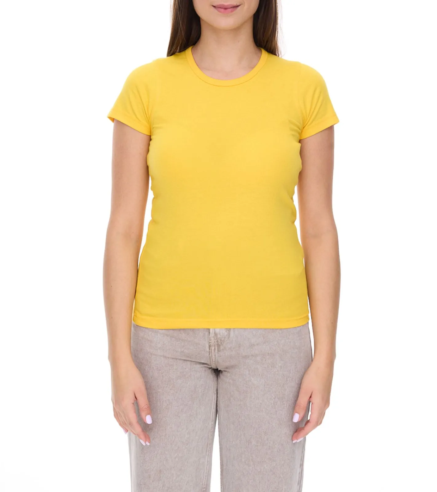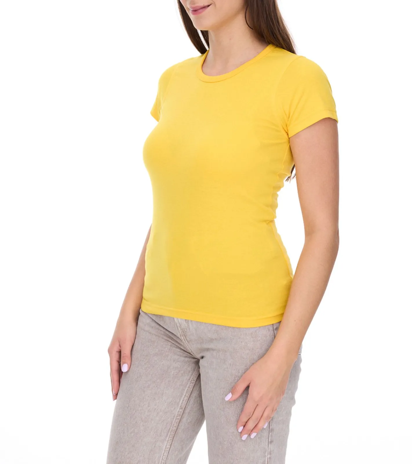 WORXWEAR Damen T-Shirt modisches Rundhals-Shirt mit 180gsm Kurzarm-Shirt in Gelb, Grün, Violett, Schwarz, Navy oder Rot