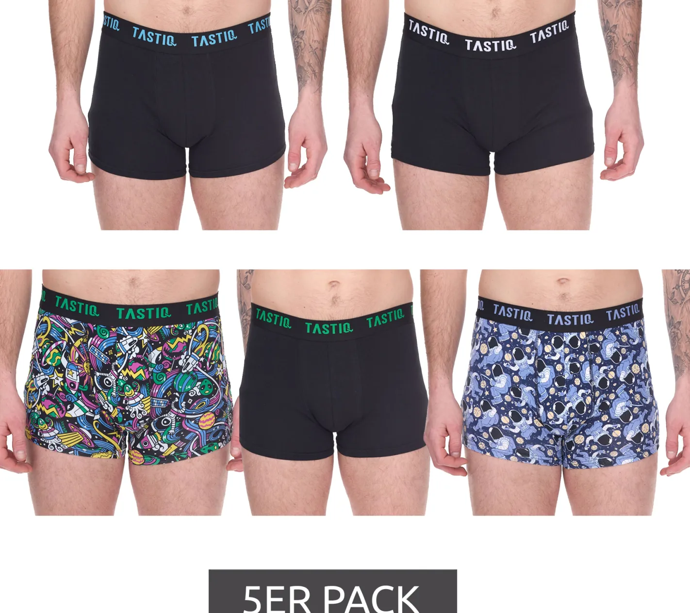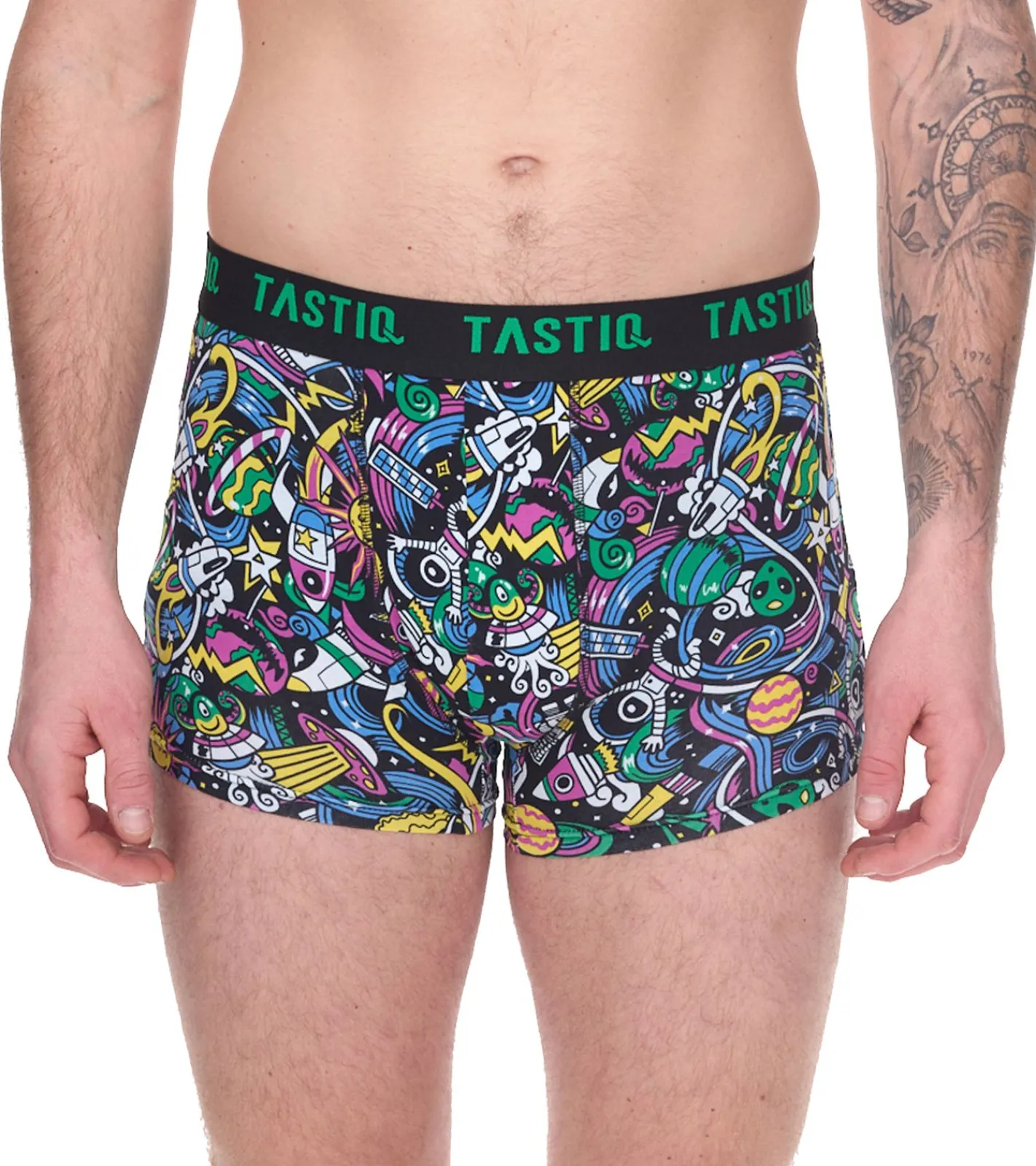 5er Pack TASTIQ Herren Boxershorts in Geschenkbox mit Weltraum-Print Baumwoll-Unterhose Tas/1/BCX5/SPAC Schwarz/Bunt