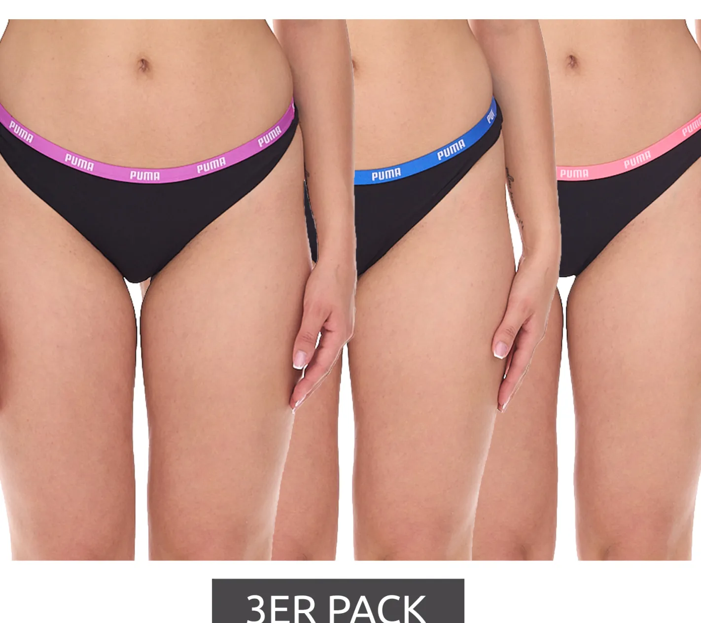 3er Pack PUMA String-Tanga Damen Slips Unterwäsche-Set Baumwoll-Slips 701224757 001 Schwarz