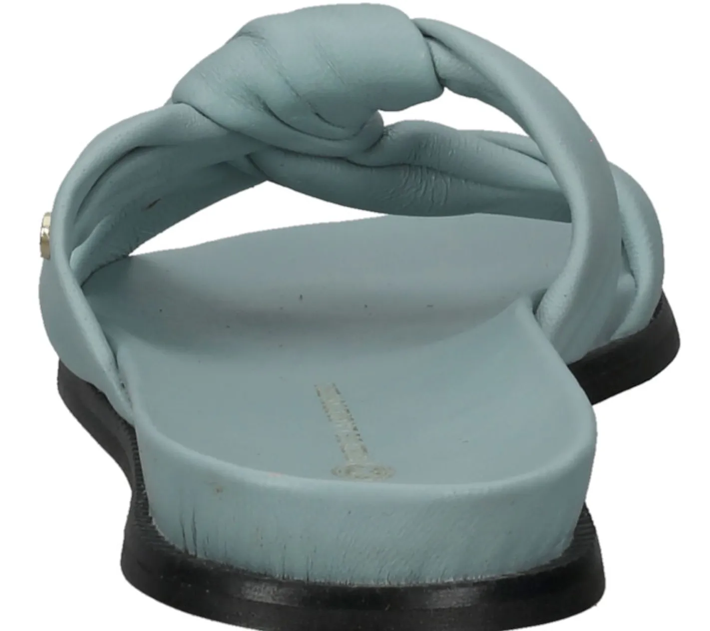 FRED DELA BRETONIERE Damen Pantolette Echtleder-Sandale mit geknotetem Riemen Sommer-Schuhe 170010217 Hellblau
