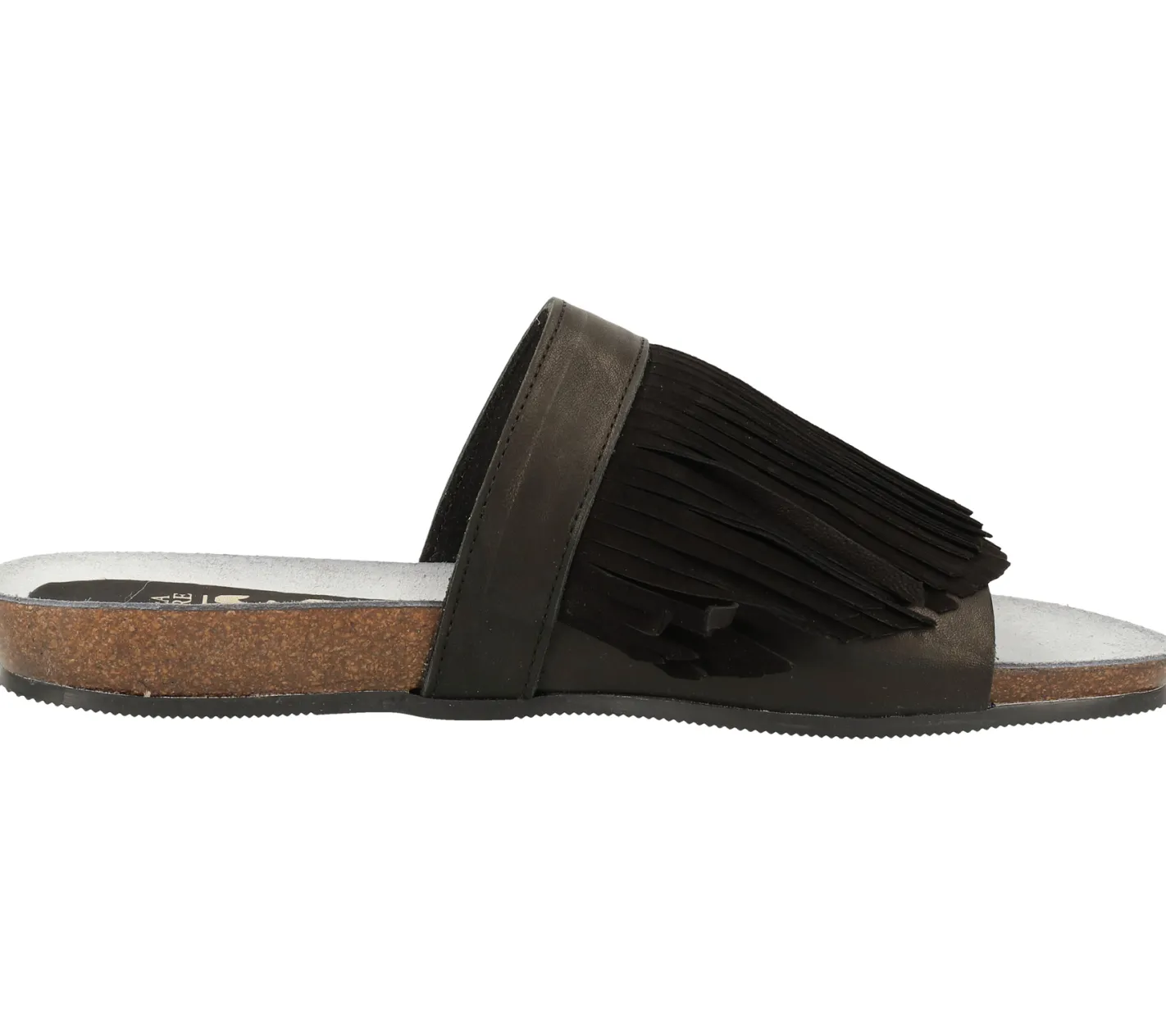 FRED DELA BRETONIERE Damen Pantolette mit aufgesetzten Fransen Echtleder-Sandale 170010099 0009 Schwarz