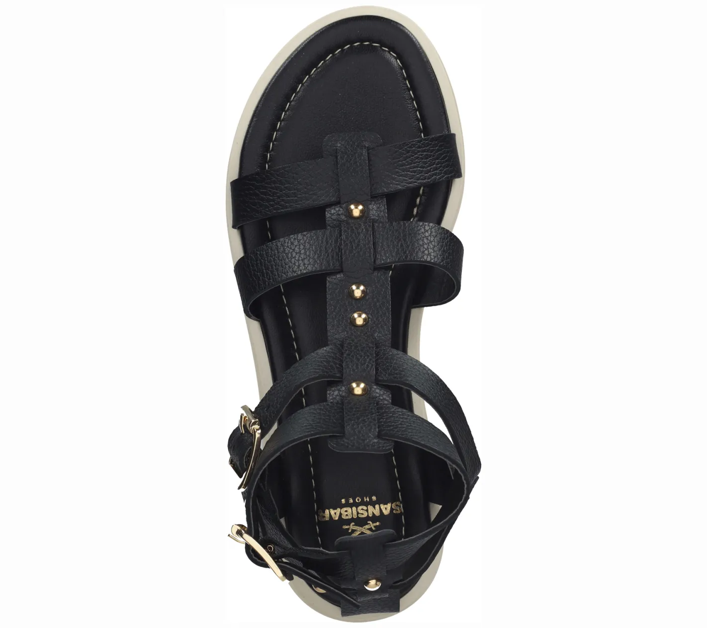 SANSIBAR Damen Sandalette Echtleder-Sandalen im Gladiator-Stil mit Nieten 1096420 Schwarz