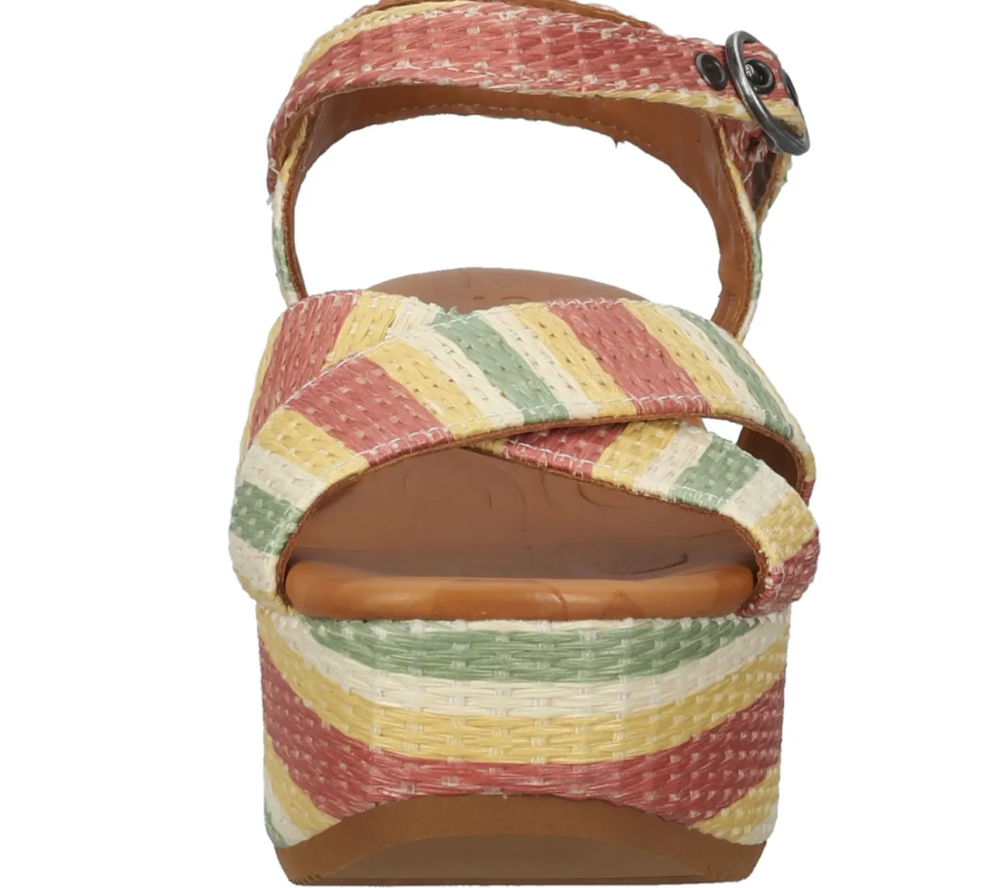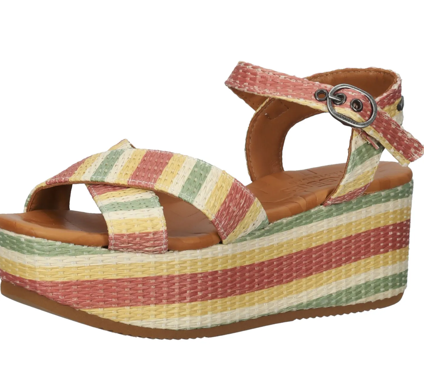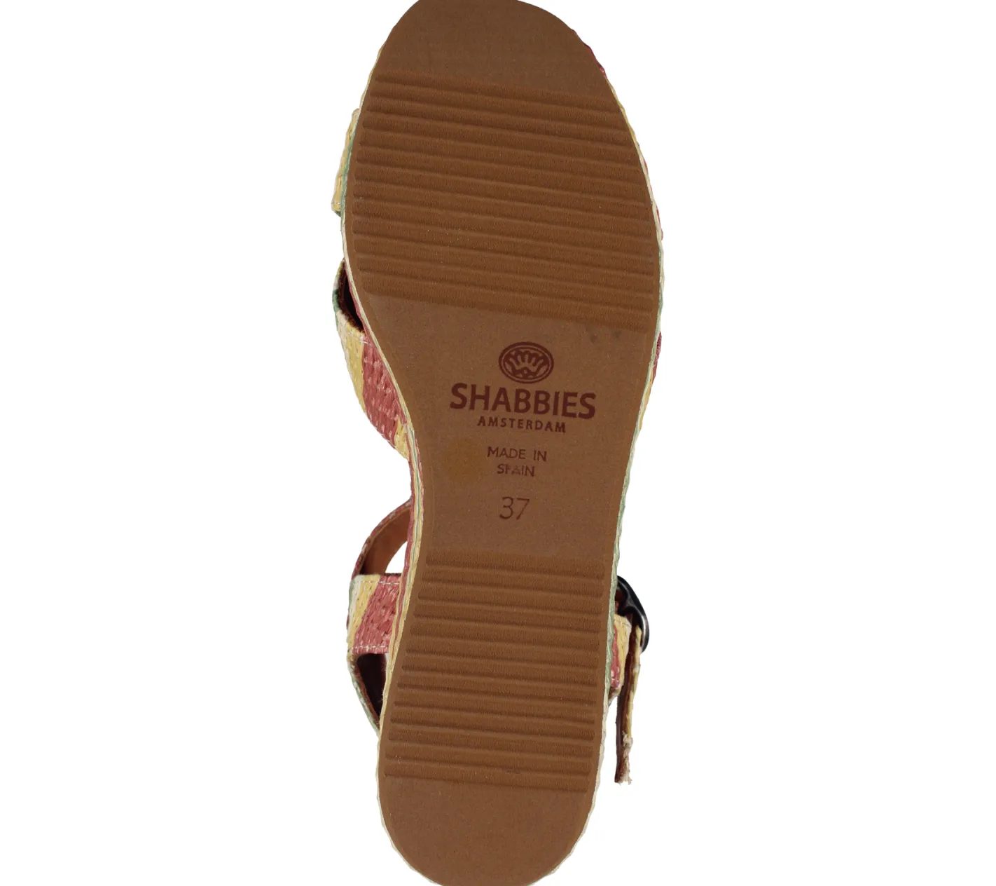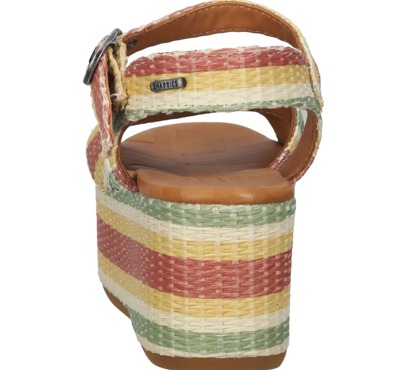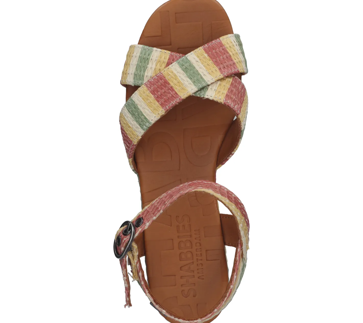 SHABBIES Amsterdam Damen Sandalette Plateau-Sandale mit Echtleder 154020024 5003 Grün/Gelb/Rot/Beige